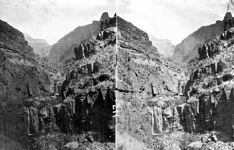 Keywords: stereoscopic stereophotography stereophotographs historical usgs history geology mapping black and white blackandwhite bnw stereograph blackandwhite monochrome outdoor mountainside mountain landscape black and white Grand Canyon National Park, Arizona. Tapeats Creek. September 1872.U.S. Geographical and Geological Survey of the Rocky Mountain Region (Powell Survey). Stereoscopic view. Negative cracked. Grand Canyon National Park, Arizona. Tapeats Creek. September 1872.U.S. Geographical and Geological Survey of the Rocky Mountain Region (Powell Survey). Stereoscopic view. Negative cracked. |