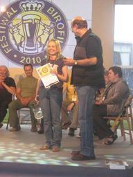 Keywords: Grand Champion 2010 - Festiwal Birofilia 2010.jpg pl Laureatka nagrody Grand Champion 2010 - Dorota Chrapek i przewodniczący jury Andrzej Sadownik Siedzą członkowie jury own Skitof Festiwal Birofilia