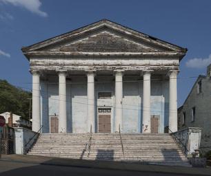 | Keywords: Grand Doric columns mark the distressed St. Matthew's Church building, constructed in 1837. Wheeling, West Virginia LCCN2015632088.tif 1 photograph digital tiff file color Notes Purchase; Carol M Highsmith Photography Inc ; 2015; DLC/PP-2015 055 ; The building was sold to a local Baptist church in 1866 and later long served as the home of Church of God and Saints of Christ whose sign can be seen above the door The Greek Revival-style church building was designed by a Wheeling house carpenter James H White and built by John Gilchrist a stonecutter and stone mason and Hiram Martin a bricklayer ; Forms part of West Virginia Collection within the Carol M Highsmith Archive ; Title date and keywords based on information provided by the photographer ; Credit line West Virginia Collection within the Carol M Highsmith Archive Library of Congress Prints and Photographs Division 2015-05-11 Creator Carol M Highsmith Library of Congress Catalog http //lccn loc gov/2015632088 Image download https //cdn loc gov/master/pnp/highsm/32000/32013a tif Original url http //hdl loc gov/loc pnp/highsm 32013 No known restrictions on publication LOC-image highsm 32013 40 4 0456 0 N 80 43 1521 0 W alt 226_source exif_heading PD-Highsmith Images uploaded by Fæ West Virginia Collection within the Carol M Highsmith Archive West Virginia Collection within the Carol M Highsmith Archive Library of Congress Prints and Photographs Division Photographs by Carol M Highsmith Church of God and Saints of Christ |