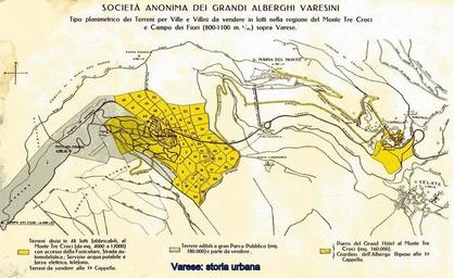 Keywords: Planimetria delle ville da costruire sotto il Grand Hotel Campo dei Fiori: furono previsto 48 lotti, di cui solo 6 vennero effettivamente venduti e costruiti. varese campodeifiori hotelcampodeifiori