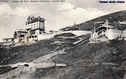 | Keywords: varese campo dei fiori campodeifiori hotel paradiso hotelparadiso grand hotel campo dei fiori grandhotelcampodeifiori funicolare outdoor Il complesso turistico del Campo dei Fiori. Al centro il Grand Hotel ancora in costruzione (terminato nel 1912) a sinistra compare ancora in piedi l'hotel Paradiso, fatto costruire da Carlo Ciotti, ormai prossimo all'abbattimento. A destra la stazione a monte della funicolare (completata nel 1911). Il complesso turistico del Campo dei Fiori. Al centro il Grand Hotel ancora in costruzione (terminato nel 1912) a sinistra compare ancora in piedi l'hotel Paradiso, fatto costruire da Carlo Ciotti, ormai prossimo all'abbattimento. A destra la stazione a monte della funicolare (completata nel 1911). |
