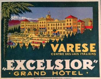 Keywords: Immagine pubblicitaria del giardino e del Grand Hotel Excelsior, aperto nel 1874 trasformando profondamente la villa appartenuta alla famiglia Recalcati. varese casbeno grandhotelexcelsior