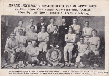 | Keywords: team gymnastics 1906 competition winners champions men vintage adelaide australia boys institute team boysinstituteteam sport a edwards aedwards r chaplin rchaplin kirkham evans kirkhamevans w botting wbotting e chaplin echaplin c n heward cnheward a mckee amckee c dittmar cdittmar e kruss ekruss r u tonkin rutonkin c f martin cfmartin g w w b hughes gwwbhughes r g shorthose rgshorthose f c barwick fcbarwick l judd ljudd Champion Gymnastic Competition - 1906 Champion Gymnastic Competition - 1906 |
