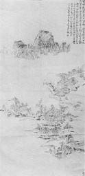 | Keywords: Grand paysage au trait pur, 1846, par le peintre chinois Su Renshan, n° 23 inventaire 17.jpg fr Grand paysage au trait pur Papier 245x118cm Exécuté au Jing-er-gong-bo-shui-xie daté début automne 1846 signé La peinture est froissée doit être remontée Pièce majestueuse d'une saisissante originalité; le pinceau cherche délibérément à imiter le burin des graveurs pour produire un effet d'estampe; cette recherche élargie à une échelle aussi imposante crée un effet d'autant plus surprenant La vie et l'œuvre de Su Renshan Rebelle Peintre et Fou Auteur Pierre Ryckmans Éditeur Imprimerie Cathay Press Ltd Cahier 3 Hong Kong langue français mois septembre année 1970 Image 23 inventaire 17 Cahier 3 passage 125 et 197 Photo en N et B Creator Su Renshan 1846 PD-old-100 Su Renshan |