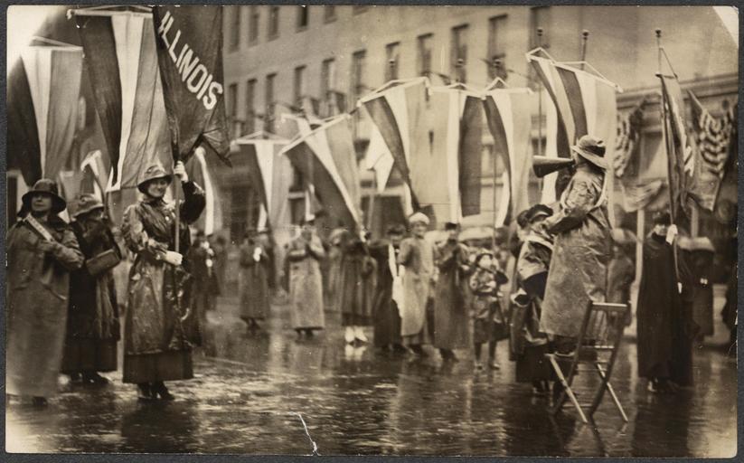 Keywords: Grand Picket at the White House 159040v.jpg Photograph on a rainy day of a woman standing on chair in slicker and rain hat speaking through a megaphone to suffragists standing with suffrage banners One banner reads Illinois Building in background Title derived by Library of Congress staff 1 photograph print 5 x 8 in accession number Call Number Location National Woman's Party Records Group I Container I 159 Folder Grand Picket March 4 1917 Source Collection Records of the National Woman's Party institution Library of Congress Manuscript Division http //hdl loc gov/loc mss/mnwp 159040 PD-Harris-Ewing Suffragettes White House in 1917 Demonstrations and protests in Washington D C |