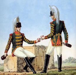 Keywords: Grande Armée - 1st Regiment of Cuirassiers - Trumpeters.jpg Napoleon's Grande Armée Carle Vernet La Grande Armée de 1812 Carle Vernet 1812 PD-old-100 La Grande Armée Carle Vernet Cuirassiers of the napoleonic period Livery clothing