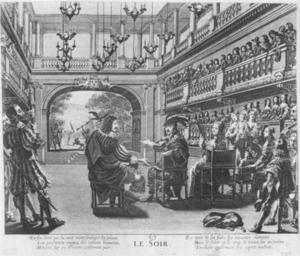 | Keywords: Grande salle du Palais-Cardinal c1642 engraving Le Soir by van Lochun - Holsboer 1933 plate6.jpg Théâtre du Palais-Cardinal in Paris during a performance engraving known as Le Soir The work being performed has been identified by Beijer as the ballet La prospérité des armes de France which was first performed on 7 February 1641 The figures in the armchairs from left to right have traditionally been identified as Louis XIII his queen Anne of Austria and the dauphin the future Louis XIV born 5 September 1638 Beijer has suggested that the young child in the arms of two ladies is the dauphin's younger brother Philippe the future Philippe I Duke of Orléans who was born 21 September 1640 The engraver Van Lochom who is not mentioned by Holsboer based this scene on a grisaille by Jean de Saint-Igny but modified the figure on the stool which in Saint-Igny's original is Cardinal Richelieu The figure in Van Lochom's engraving who is wearing court rather than clerical garb is still identified in many sources as Cardinal Richelieu however Powell has suggested that it depicts Gaston Duke of Orléans the younger brother of Louis XIII User scan of Holsboer S Wilma 1933 L'Histoire de la mise en scène dans le théâtre français de 1600 à 1657 p 52 Paris Droz 5859717 Credit Bibliothèque nationale de France The original grisaille by Saint-Igny is in the Musée des Arts Décoratifs in the Louvre Michael Van Lochom 1601 “1647 engraver<br />after a grisaille by Creator Jean de Saint-Igny 1642 <gallery> File Premiere salle du Palais-Royal 1643 engraving by van Lochun - NGO3p857 jpg Le Soir<br />from Grove Opera File Salle du Palais-Cardinal with Richelieu 1641 - Jacquot 1964 Pl3 fig5 after p403 jpg Grisaille by Saint-Igny<br />from Beijer File Représentation théâtrale au Palais Royal avec Louis XIII Anne d'Autriche et Richelieu - Conseil d'État jpg Grisaille by Saint-Igny<br />from Conseil d'État website </gallery> Sources Beijer Agne 1964 Le ballet de la prospérité des armes de France pp 377 “403 in Le lieu théâtral à la renaissance edited by Jean Jacquot Paris Éditions du Centre national de la recherche scientifique http //www worldcat org/search q ti 3Alieu+theatral+renaissance+au 3Ajacquot fq yr 3A1964 1964+ 3E qt advanced dblist 638 Listings at WorldCat Powell John S 2000 Music and Theatre in France 1600 “1680 pp xv 16; plates 4a and 4b after p 272 Oxford Oxford University Press ISBN 9780198165996 Sadie Stanley ed 1992 The New Grove Dictionary of Opera Paris vol 3 p 857 London Macmillan ISBN 9781561592289 Scott Virginia 1990 The Commedia dell'Arte in Paris 1644 “1697 pp 87 “88 Charlottesville University Press of Virginia ISBN 9780813912554 PD-old-100 Grande salle du Palais-Cardinal Michael Van Lochom Le Soir Jean de Saint-Igny Armand Jean du Plessis Cardinal Richelieu Louis XIII of France Louis XIV as a child Anne of Austria Gaston Duke of Orléans |