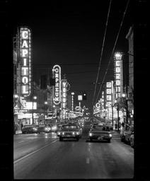 | Keywords: vancouver neon blackandwhite monochrome skyline city architecture building night black and white PHOTO NUMBER:43347 DESCRIPTION: Theatre Row, 800 block of Granville Street, Vancouver, BC PHOTOGRAPHER:Province Newspaper DATE: 1968 SUBJECTS: Theatres, Granville Street, Neon More information on our historical photograph collection: www.vpl.ca/historicalphotos PHOTO NUMBER:43347 DESCRIPTION: Theatre Row, 800 block of Granville Street, Vancouver, BC PHOTOGRAPHER:Province Newspaper DATE: 1968 SUBJECTS: Theatres, Granville Street, Neon More information on our historical photograph collection: www.vpl.ca/historicalphotos |