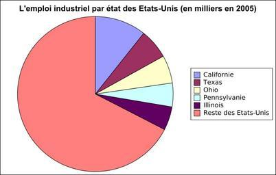 | Keywords: Graph circulaire emploi par etat USA 2005.svg fr Graphique circulaire représentant l'emploi industriel aux Etats-Unis dans les cinq premiers états et dans le reste du pays en 2005 Source http //www census gov/compendia/statab/cats/manufactures html Table 968 Manufactures ”Summary by State 2006 US Census Bureau The 2009 Statistical Abstract The National Data Book Own Urban 2009-04-23 Economy of the United States | ||||