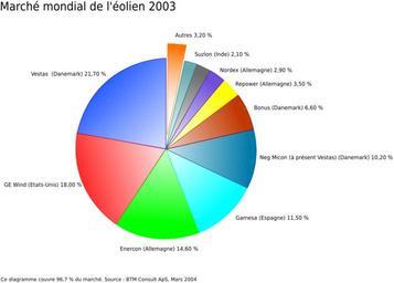 Keywords: Graphique marche eolien 2003 (2).svg Graphique du marché de l'éolien en 2003 Amélioration du fichier media Graphique_marche_eolien_2003 svg User Fabien1309 Atelier graphique SVG pie charts