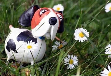 Keywords: grass daisies dog spring garden sun