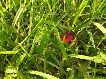Keywords: grass red leaf fallen leaf natural sunlight field outdoor