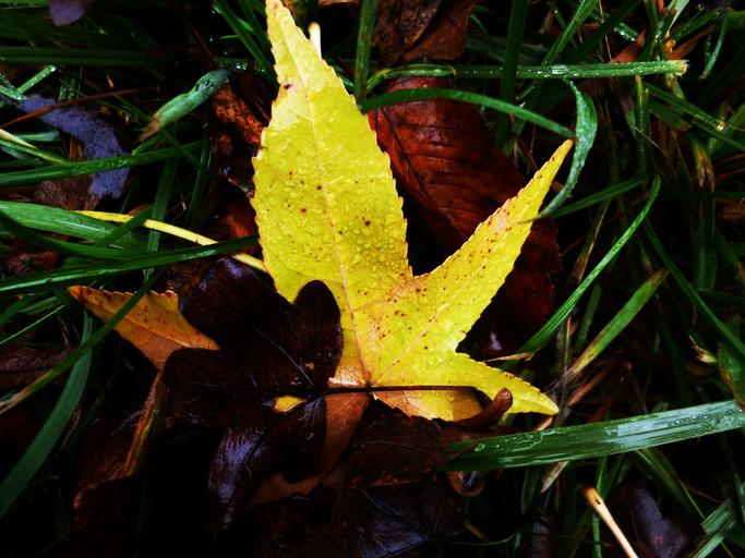 Keywords: grass sheet foliage autumn autumn leaves yellow colors autumnal nature dry leaves autumn leaf