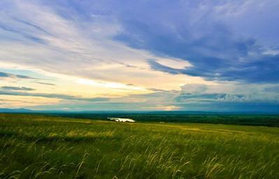Keywords: grasses grasslands greenery meadows blue sky cloudy horizon landscape pond greens weeds growing lawn outdoor summer environment countryside plants green leaves scenic scenery flora