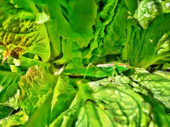 Keywords: grasshopper insect macro color green nature grille leaf kohl