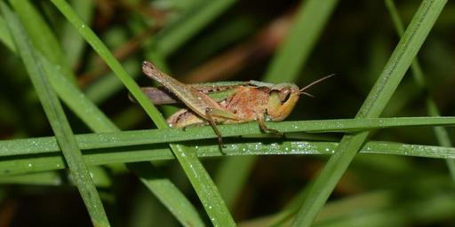Keywords: grasshopper slant faced grasshopper hopper insect close up small grass wildlife fauna nature insectoid arthropod mermiria bivittata