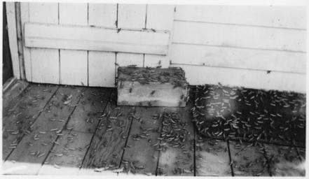 | Keywords: Grasshoppers - NARA - 285272.jpg Scope and content Grasshoppers on window screen tree and porch General notes 285272 Local identifier Department of the Interior Bureau of Indian Affairs Aberdeen Area Office Cheyenne River Agency 1949 - NARA's Central Plains Region Kansas City NREA 400 West Pershing Road Kansas City MO 64108 1936 Record group Record Group 75 Records of the Bureau of Indian Affairs 1793 - 1999 Record group ARC 404 Cheyenne River Agency Photographs compiled 1900 - 1960 Series ARC 285217 File unit File unit ARC Variant control numbers NAIL Control Number NRE-75-CR PHO -1119 Other versions <gallery> File Grasshoppers_-_NARA_-_285272 tif tif File Grasshoppers_-_NARA_-_285272 jpg jpg </gallery> NARA-cooperation PD-USGov Swarms of locusts Cheyenne River Indian Reservation |