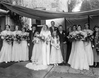 | Keywords: grattan family grattanfamily bellew family bellewfamily grattan bellew mount loftus mountloftus kilkenny ireland leinster roses bouquets satin ferns maidenhair pearls bride groom bridesmaids flower girls flowergirls gloves veil choker wedding dress weddingdress morning suits morningsuits buttonholes a.h. poole ahpoole arthur henri poole arthurhenripoole poole collection poolecollection glass negative glassnegative train weddings national library of ireland nationallibraryofireland blackandwhite monochrome people wedding black and white This must be one of our most stylish wedding photos, taken at Mount Loftus in Kilkenny. We knew the date, but usual terms and conditions applied, i.e. we needed a location and we were hoping for names, and you did not disappoint. And as you know, we're not at all proud, so any other information would go down very well indeed... Date: Thursday, 1 June 1933 NLI Ref: POOLEWP 3972a You can also view this image, and many thousands of others, on the NLI’s catalogue at catalogue.nli.ie This must be one of our most stylish wedding photos, taken at Mount Loftus in Kilkenny. We knew the date, but usual terms and conditions applied, i.e. we needed a location and we were hoping for names, and you did not disappoint. And as you know, we're not at all proud, so any other information would go down very well indeed... Date: Thursday, 1 June 1933 NLI Ref: POOLEWP 3972a You can also view this image, and many thousands of others, on the NLI’s catalogue at catalogue.nli.ie |