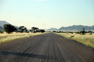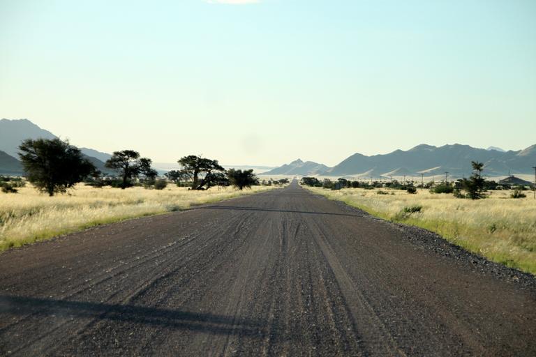 Keywords: gravel road dirt road lonely street hot distance horizon namibia africa desert sky