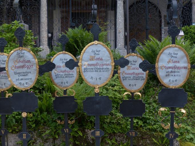 Keywords: graves cemetery crosses salzburg old cemetery st peter's cemetery cemetery of the monastery st peter burial ground sebastian stumpfegger seven crosses