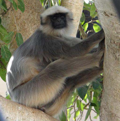 Keywords: gray langur monkey sleeping animal mammal sitting female resting hanuman langur semnopithecus entellus india