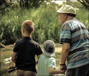 Keywords: great grand dad great grand children looking park interested boys children outdoors family father pensioner leisure happiness