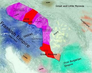 | Keywords: Great Moravia Puspoki's Theory.jpg en Carpathian Basin before the Hungarian conquest According to Peter Nagy Puspoki's theory own Fakirbakir Source is a public domain map http //commons wikimedia org/wiki/File Europe_satellite_image_location_map jpg Items derive from http //www tankonyvtar hu/site/img/historia/1986_86-01_08_Puspoki1_original jpg Peter Püspöki Nagy a Slovak historian who proposed in his study initially published in 1978 and later in 1982 existence of two Moravias based on the sources of De administrando imperio DAI and Bavarian Geographer The latter source distinguishes between Marharii identified by Nagy as neighbors of Bohemians and Marehanii who bordered on the Bulgars farther to the southeast Maps of the Hungarian prehistory Maps of the history of Slovakia Maps of the history of the Czech Republic Maps of the history of Serbia in the Early Middle Ages Maps of the history of Vojvodina Maps showing 9th-century history Maps showing history of the Early Middle Ages Maps of Great Moravia Maps of the Frankish territory Maps of the history of Central Europe Romania in the 9th century Maps of the history of Romania in the Middle Ages |