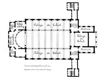 | Keywords: Great Synagogue in Warsaw (02).png en Great Synagogue in Warsaw plan of the first floor pl Wielkia Synagoga w Warszawie plan pierwszego piętra uk Велика синагога у Ва шаві План д угого пове ху А хітекто Леанд о а коні 1834-1919 http //bcpw bg pw edu pl/dlibra/doccontent id 930 Architekt 1902 3 s 21-22 Leandro Jan Marconi 1834-1919 before 1902 PD-old PD-Poland Great Synagogue in Warsaw | ||||