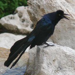 | Keywords: Great-tailed Grackle-27527.jpg A Great-tailed Grackle Quiscalus mexicanus perched on a rock making the loud abrasive call for which these birds are notorious <br>Photo taken with a Panasonic Lumix DMC-FZ50 on the island of Cozumel in Quintana Roo Mexico http //www kenthomas us KenThomas us<br> personal website of photographer 2008-02-04 09 19-06 <sup>ISO 8601</sup> Ken Thomas This image is released to the public domain and therefore no permission or credit is required <br> Comments and/or feedback however are always welcome See my user page for contact info Quiscalus mexicanus Taken with Panasonic Lumix DMC-FZ50 |