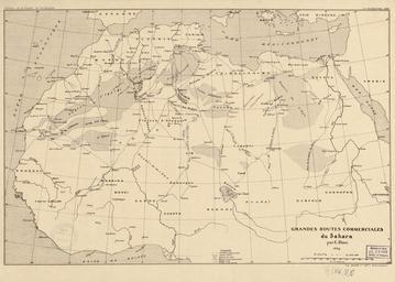 | Keywords: Great Trading Routes of the Sahara WDL100.png Artwork ru Бланк Blanc E fr Blanc E en Blanc E zh Blanc E pt Blanc E ar بلانك إ es Blanc E ru Великие то говые пути Саха ы fr Grandes routes commerciales du Sahara en Great Trading Routes of the Sahara zh 撒哈拉伟大的贸易路线 pt Grandes rotas comerciais do Saara ar الطرق التجارية العظمى في الصحراء الكبرى ru Ка та то говых путей п оходивших че ез пустыню Саха а составленная в 1889 году ф анцузским исследователем и путешественником Эдуа дом Блан от ажает астущую значимость кото ую ев опейцы п идавали сухопутной то говле в пе иод импе ской схватки за Аф ику в конце XIX века В статьях о своей аботе Блан подче кивал важность оп еделения естественных геог афических ма ш утов кото ые связали бы ф анцузские колонии в западной Аф ике такие как Сенегал с Алжи ом в севе ной Аф ике а также побе ежье С едиземного мо я с Суданом и цент альной Аф икой Блан составлял свои ка ты не только на данных полученных им в ходе путешествий но также на отчетах написанных ев опейскими исследователями и путешественниками за последние сто лет начиная со в емен англичанина У Дж Б ауна и его путешествия в Да фу в 1793 году В числе топог афических ха акте истик п иведенных на ка те дюны еки сухие долины а также ка аванные ма ш уты а абов ветки железной до оги в ев опейских колониях и до оги В ка ту также включены ма ш уты экспедиций некото ых ев опейских путешественников и исследователей в том числе ма ш уты экспедиции Густава ахтигаля в Судан в 1869 году путешествий Оска а Ленца из а окко в Тимбукту в 1880 году путешествия итальянских исследователей атеуччи и асса и в Судан в 1880 году и нескольких ф анцузских экспедиций отп авившихся с побе ежья Алжи а в том числе экспедиций Колоньи из О ана в 1860 году и Флате а из Константины в 1880-81 гг <br>Саха а; То говые пути fr Cette carte de 1889 des routes commerciales transsahariennes par l'explorateur français Edouard Blanc reflète la priorité croissante donnée par les Européens au commerce terrestre pendant la « ruée sur l'Afrique » impériale de la fin du XIXe siècle Dans des articles sur son travail Blanc souligna l'importance de l'identification de routes géographiques « naturelles » qui relieraient les possessions coloniales françaises en Afrique de l'Ouest comme le Sénégal à l'Algérie en Afrique du Nord et feraient le lien entre la côte méditerranéenne et le Soudan ainsi que l'Afrique centrale Blanc basa ses cartes non seulement sur ses propres voyages mais aussi sur près d'un siècle de récits de voyageurs européens remontant jusqu'au voyage au Darfour de l'Anglais W G Browne en 1793 Les caractéristiques indiquées sur la carte comprennent les dunes les cours d eau et les vallées sèches ainsi que les routes caravanières arabes les lignes ferroviaires coloniales et les routes Les itinéraires de plusieurs explorateurs européens sont également décrits y compris l'expédition de Gustav Nachtigal en 1869 au Soudan les voyages d'Oskar Lenz du Maroc à Tombouctou en 1880 le voyage de 1880 au Soudan par les Italiens Matteucci et Massari et plusieurs expéditions françaises partant de la côte algérienne y compris celle de Colonieu en 1860 depuis Oran et celle de Flatters de Constantine en 1880 et 1881 <br>Sahara; Routes commerciales en This 1889 map of trans-Saharan trading routes by French explorer Edouard Blanc reflects the growing priority that Europeans gave to land-based trade during the late 19th-century imperial scramble for Africa In articles about his work Blanc stressed the importance of identifying natural geographic routes that would connect French colonial possessions in west Africa such as Senegal to Algeria in north Africa and link the Mediterranean coast to Sudan and central Africa Blanc based his maps not only on his own travels but also on nearly a century of reports from European travelers dating back to the Englishman W G Browne s 1793 voyage to Darfur Features identified on the map include dunes rivers and dry valleys as well as Arab caravan routes colonial railways and roads The routes of several European explorers also are documented including Gustav Nachtigal s 1869 expedition to Sudan Oskar Lenz s travels from Morocco to Timbuktu in 1880 the 1880 voyage to Sudan by the Italians Matteucci and Massari and several French expeditions from the Algerian coast including that of Colonieu in 1860 from Oran and of Flatters from Constantine in 1880-81 <br>Sahara; Trade routes zh 这幅由法国探险家爱都尔德·布兰克绘制的 1889 年跨撒哈拉贸易路线图表明了 各国 争夺 洲 的 19 世纪晚 欧洲人对陆路贸易的日益重视 关自身工 的文章中,布兰克强调了查明 自然 理路线的重要 ,因为这些路线能将法国 西 的殖民 (