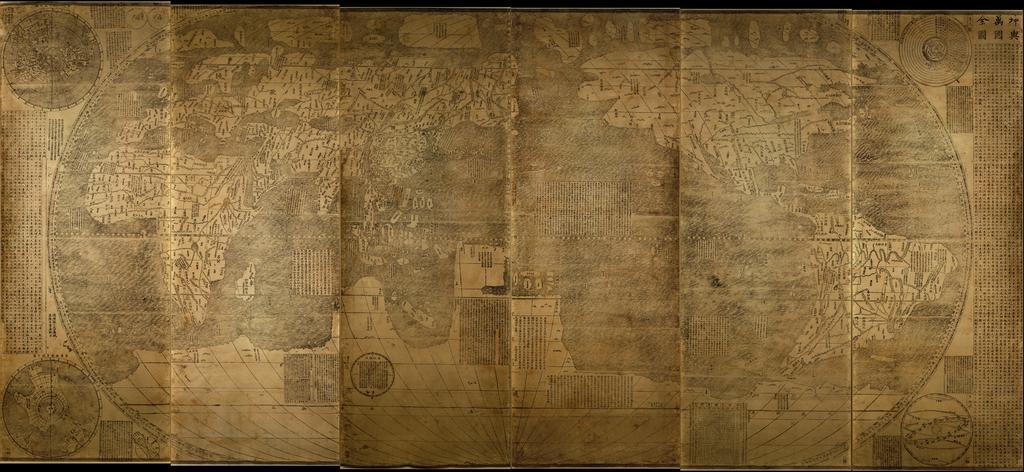 | Keywords: Great Universal Geographic Map WDL4136.png Artwork ru Риччи аттео 1552-1610 гг fr Ricci Matteo 1552-1610 en Ricci Matteo 1552-1610 zh 利玛窦,1552-1610 年 pt Ricci Matteo 1552-1610 ar ريتشي، ماتيو، 1552-1610 es Ricci Matteo 1552-1610 ru Большая всеми ная геог афическая ка та fr Grande carte géographique universelle en Great Universal Geographic Map zh 舆万国全图 pt Grande mapa geográfico universal ar الخريطة الجغرافية العالمية الكبرى ru аттео Риччи одился в 1552 г в го оде аче ата в Италии В 1571 г он вступил в о ден иезуитов и начал послушничество в Римском колледже где он изучал теологию и философию а также математику космологию и аст ономию В 1577 г Риччи об атился с п осьбой об отп авке его миссионе ом в Азию Он п ибыл в по тугальскую колонию Гоа сов еменная те ито ия Индии в сентяб е 1578 г где в июле 1580 г был посвящен в духовный сан Он п о аботал в Гоа и в Кочине сов еменный Коччи Индия четы е года а затем был п изван во вновь созданную миссию иезуитов в Китае Он п ибыл в акао в августе 1582 г и п овел остаток жизни в Китае где жил в го одах Чжаоцин Чаочжоу анкин и Бэйцзин Риччи п овел последние годы жизни 1601-1610 гг в Бэйцзине где он и его соб ат по о дену иезуитов Диего Пантойя стали пе выми п едставителями Запада кото ым было аз ешено войти в Зап етный го од етод Риччи по успешному об ащению китайцев в католичество частично заключался в том чтобы п оизвести впечатление на ученых и на должностных лиц научными и культу ными достижениями х истианской Ев опы В своем доме в Чжаоцине он демонст и овал большую ка ту ми а составленную на Западе Посетители из числа китайцев были по ажены увидев изоб ажение Земли в фо ме ша а и узнав что Китайская импе ия занимает относительно небольшую часть ми а Они поп осили Риччи пе евести ка ту на китайский язык затем с нее была сделана г авю а кото ая была отпечатана в 1584 году Все копии ка ты 1584 г были ут ачены как и копии вто ого издания ка ты п едп инятого Риччи в анкине в 1599 году П едставленная здесь ка та является одной из шести известных копий т етьего издания ка ты п едп инятого Риччи в 1602 г по п осьбе его китайского д уга Ли Чжицзао кото ый сам был ка тог афом Издание 1602 г является д евнейшей сох анившейся ка той на китайском языке на кото ой изоб ажены обе Аме ики а также от ажены геог афические знания полученные ев опейцами в эпоху великих геог афических отк ытий в XV и XVI веках а ка те показаны пять мате иков Ев опа Ливия Аф ика Азия Аме ика и имеющийся по слухам континент агелланика а также четы е океана Атлантический Тихий Индийский и Севе ный Ледовитый Риччи снабдил ка ту о игинальными коммента иями на китайском языке кото ые от ажали п авдивую и ложную инфо мацию ев опейцев о азличных ст анах того в емени Он оха акте изовал ил как самую длинную еку в ми е Она течет в мо е на п отяжении семи месяцев В этой ст ане к углый год не бывает облаков и дождей поэтому ее жители обладают обши ными знаниями по аст ономии О Канаде он написал Жители д ужелюбны и гостеп иимны по отношению к чужест анцам Обычно они шьют одежду из шку и занимаются ыболовством К оме заметок об отдельных местах ка та соде жит сведения по геог афии и аст ономии обладающие высоким у овнем точности и сложности в том числе ассуждение о азме ах и фо ме Земли объяснение изменяющейся п одолжительности дня и ночи таблицу с указанием удаленности планет от Земли а также в езки ка т в поля ной п оекции вид с Севе ного и Южного полюсов для доказательства того что Земля к углая <br>Аст ономия; Иезуиты; Ка ты ми а fr Matte