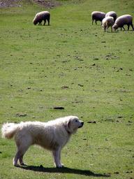 Keywords: Greatpyrrazorback.jpg Pyrenean Mountain Dog Ejemplar vigilando ovejas en un pasto un esemplare al lavoro http //en wikipedia org/wiki/Image Greatpyrrazorback jpg Pyrenean Mountain Dog Livestock guardian dogs