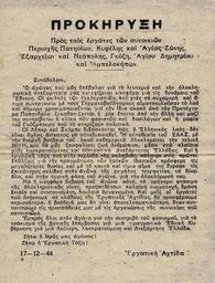 | Keywords: Greece-1944-12-17-kke-pamphlet.jpg en A pamphlet calling workers from different neighbours of Athens to fight against the Greek Government under Prime Minister Georgios Papandreou and its British support Original document dimensions 18 cm x 13 cm el Προκήρυξη ρος τους εργάτες διαφόρων αθηναϊκών συνοικιών να ολεμήσουν εναντίον της Ελληνικής Κυβέρνησης με ρωθυ ουργό τον Γεώργιο Πα ανδρέου και των Βρετανών υ οστηρικτών της Διαστάσεις φύλλου 18 cm x 13 cm 1944-12-17 www vergosauctions com National Liberation Front Greece and/or Communist Party of Greece - exact author unknown other versions Custom license marker 2016 11 12 Anonymous-EU Dekemvriana 1944 in Athens December 1944 in Greece |