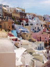 Keywords: greece mykonos cyclades holiday island travel mediterranean city color greek island pink yellow white