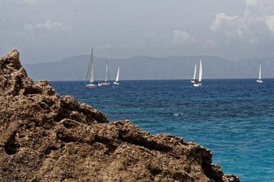 Keywords: greece rhodes sea water stone rock boot sailing boat sky clouds