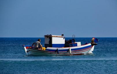 Keywords: greece samos fishing boat blue sea blue sea wave water island horizon summer holiday