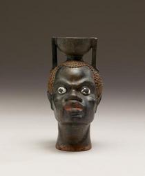 | Keywords: Greek - Aryballos in the Form of Head of an African - Walters 482017.jpg This aryballos is in the shape of an African head It has a hemispherical mouth with a straight support rectangular in section on either side The mouth is glazed black outside and inside and is painted with red over black on top of the rim The supports are painted black on three sides and red over black on the outside The body is painted black The back of the head is smooth the lips are red the irises of the eyes are white the interior of the ears are white and red Added clay dots for the hair are painted red with slight traces of white The piece has an oval base with a reserved underside and a red band on the outside at the bottom of the vessel There is not another head vase known quite like this one The date of the vase is difficult to determine for the form of the mouth and its supports are typical of examples from the late archaic but the modelling of the face in respect to style is not far removed from the work of Sotades who was active around 460-450 BC ca 480 430 BC Classical terracotta H overall 3 5/8 x W 1 13/16 x D 2 9/16 in 9 2 x 4 65 x 6 55 cm ; Diam at mout cm 3 1 ; Diam at mouth with supports cm 3 8 ; W at base 1 3/16 x D 1 1/4 in 2 95 x 3 15 cm accession number 48 2017 4096 Joseph Brummer New York date and mode of acquisition unknown Joseph Brummer Sale New York 1949 Pt III no 2 Walters Art Museum 1949 by purchase Museum purchase 1949 place of origin Attica Greece Walters Art Museum license Ancient Greek pottery in the Walters Art Museum Ancient Greek pottery aryballoi Media contributed by the Walters Art Museum needs category review Attic red-figure pottery |