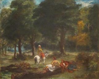 | Keywords: 'Greek Cavelry Men Resting in Forest' by Eugène Delacroix, 1858.JPG en Greek Cavelry Men Resting in Forest oil on canvas painting by Eugène Delacroix 1858 Cleveland Museum of Art own Wmpearl 1858 French paintings in the Cleveland Museum of Art History paintings by Eugène Delacroix 1850s paintings from France 1858 paintings Cc-zero |
