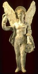 | Keywords: Greek - Eros - Walters 482527.jpg The fluttering ends of the drapery and the thick white underpainting or slip are recognizably South Italian All Hellenistic terracotta figurines were gaily painted with bright colors usually derived from plants century 3 BC Hellenistic terracotta with white slip and traces of paint cm 26 7 12 6 1 accession number 48 2527 8916 Dr Frederick G Stern Potomac MD Walters Art Museum December 1985 by gift Gift of Dr Frederick G Stern 1985 From Alexander to Cleopatra Greek Art of the Hellenistic Age The Walters Art Gallery Baltimore 1988-1989 place of origin Constantinople present-day Istanbul Turkey Walters Art Museum license Ancient Greek sculptures in the Walters Art Museum Art from Greece Media contributed by the Walters Art Museum needs category review |