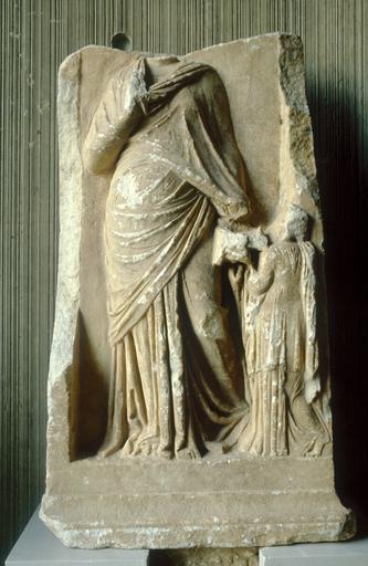| Keywords: Greek - Grave Relief of a Woman Depicted as a Muse - Walters 23230.jpg The relief was made near Smyrna present-day Izmir Turkey on the west coast of Asia Minor and portrays the deceased as a Muse as indicated by her pose and dress On other representations of this type the maiden holds a kithara a stringed instrument that resembles a lyre or small harp The smaller figure on the right is a servant girl century 2 BC carved marble cm 75 42 8 14 accession number 23 230 17081 Summa Galeries Los Angeles CA March 1980 Walters Art Museum 1980 by purchase Museum purchase 1980 From Alexander to Cleopatra Greek Art of the Hellenistic Age The Walters Art Gallery Baltimore 1988-1989 place of origin Rome Italy Walters Art Museum license Ancient Greek sculptures in the Walters Art Museum Art from Greece Media contributed by the Walters Art Museum needs category review |