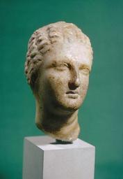 | Keywords: Greek - Head of a Woman with Braids - Walters 23137 - Three Quarter.jpg This piece may be dated by the details of the hairstyle especially the position of the braids which are wrapped around the head like a tiara The deep-set inner corners of the eyes and the angle at which the head is tilted will become common features of later Hellenistic sculpture ca 325 BC Hellenistic marble cm 11 6 7 7 accession number 23 137 22601 Dikran Kelekian Paris and New York Henry Walters city Baltimore Walters Art Museum Henry Walters Acquired by Henry Walters 1929 Our Ancient Heritage An Exhibit of Art and Artifacts from Egypt Mesopotamia Greece Roman Empire Philbrook Art Center Tulsa 1963 From Alexander to Cleopatra Greek Art of the Hellenistic Age The Walters Art Gallery Baltimore 1988-1989 place of origin Greece Walters Art Museum license Ancient Greek sculptures in the Walters Art Museum Art from Greece Media contributed by the Walters Art Museum needs category review Braids in art |