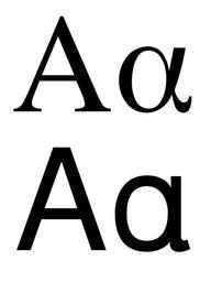| Keywords: Greek letter alpha.svg en The greek letter Alpha in its upper and lower cases de Der griechische Buchstabe Alpha in Groß- und Kleinschreibung recreated from Image greek_letter_alpha png as SVG using Inkscape and http //savannah gnu org/projects/freefont/ Free UCS Outline Fonts Kuhlix 2009-02-26 Alpha letter Greek uppercase and lowercase letters Serif+sans Greek letters Greek glyphs in SVG | ||||