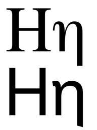 | Keywords: Greek letter eta serif+sans.svg en The greek letter Eta in its upper and lower cases de Der griechische Buchstabe Eta in Groß- und Kleinschreibung recreated from Image greek_letter_eta png as SVG using Inkscape and http //savannah gnu org/projects/freefont/ Free UCS Outline Fonts Kuhlix 2009-02-26 Eta letter Greek uppercase and lowercase letters Serif+sans Greek letters |