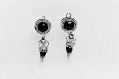 | Keywords: Greek - Pair of Disk-and-Amphora Pendant Earrings - Walters 57610, 57611.jpg This pair of earrings is decorated with filigree Amphora pendants evolved from pyramidal pendants and are fairly common in the late Hellenistic period century 2 1 BC Hellenistic gold garnet 57 610 cm 3 55 1 21 0 54 ; 57 611 cm 3 6 1 2 0 6 accession number 57 610 57 611 77412 Henry Walters Baltimore date and mode of acquisition unknown Walters Art Museum Henry Walters Acquired by Henry Walters place of origin Greece Walters Art Museum license Ancient Greek art in the Walters Art Museum Jewellery in the Walters Art Museum Art from Greece Media contributed by the Walters Art Museum needs category review |