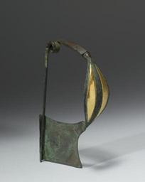 | Keywords: Greek - Plate Fibula - Walters 542467 - Three Quarter.jpg The large size and gold foil inlays decorating the upper surface of the bow make this fibula especially noteworthy The large catch-plate is incised on both sides with a delicate linear design of three fishes within a border Like all fibulae it functioned as a clothing fastener usually worn a pair on each shoulder between 750 700 BC Archaic bronze inlaid with gold cm 18 3 accession number 54 2467 22005 André Emmerich Gallery New York date and mode of acquisition unknown Walters Art Museum 1965 by purchase Museum purchase 1965 Jewelry - Ancient to Modern The Walters Art Gallery Baltimore 1979-1980 place of origin Thessaly Greece Walters Art Museum license Ancient Greek art in the Walters Art Museum Jewellery in the Walters Art Museum Art from Greece Media contributed by the Walters Art Museum needs category review |
