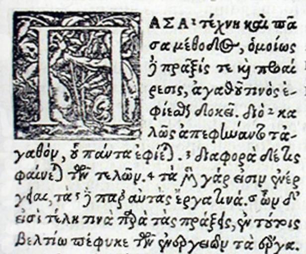 | Keywords: Greek print 1566 Aristotle.png Early Greek print First page of Aristotle's Nicomachaen ethics printed Basel Johannes Oporin und Eusebius Episcopius August 1566 Cropped to demonstrate early Greek print fonts http //www ub unibas ch/kadmos/gg/pic/gg0127_007_txt htm 2008-01-27 cropped photoshopped for readability and uploaded by User Future Perfect at Sunrise pd-old uncropped version Image Aristotelis_De_Moribus_ad_Nicomachum jpg Works of Aristotle | ||||