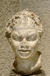 | Keywords: Greek - Statue Fragment of the Head of a Young Satyr - Walters 23110.jpg The pointed ears tousled hair and mischievous facial expression identify this head broken off from a statue as that of a young satyr Satyrs were mostly human mythological creatures who often sported the tail ears and perhaps the legs of a goat They were unruly followers of Bacchus god of wine and were popular subjects for art in antiquity and later periods century 2 marble cm 30 accession number 23 110 40153 Joseph Brummer New York Henry Walters city Baltimore Walters Art Museum Henry Walters Acquired by Henry Walters 1926 place of origin Mediterranean Walters Art Museum license Ancient Greek sculptures in the Walters Art Museum Ancient Roman sculptures in the Walters Art Museum Art from Greece Media contributed by the Walters Art Museum needs category review Media contributed by the Walters Art Museum needs artist review |