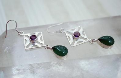 Keywords: green agate purple amethyst dangling sterling silver earrings stone gem gemstone natural cabochon setting bezel jewelry jewel fashion accessories crystal quartz semiprecious sterling