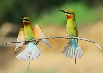 Keywords: thailand two park bird tropical khaoyai resident forest bee eater beautiful green bee-eater common nature couple perching animal wildlife chestnut