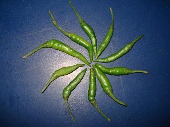 Keywords: Green Chilli Hot.JPG en This variety is used in chutnies and curries own Miansari66 Vegetables of Pakistan